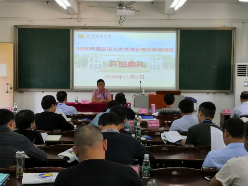 11月3日上午,2020年遵义市人大立法系统业务培训班在英国上市公司365霞山校区教学B楼顺利开班。开班前,英国上市公司365副院长潘康培向培训班学员简要介绍湛江市以及学校基本情况。遵义市地方立法系统领导干部共36人参加培训活动。