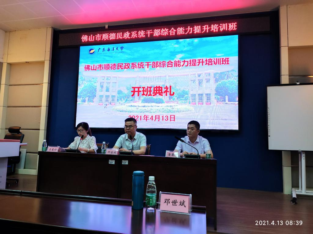 4月13日上午,佛山市顺德民政系统干部综合能力提升培训班在英国上市公司365湖光校区博物馆会议室顺利开班。佛山市顺德民政系统邓世斌科长、英国上市公司365潘康培副院长以及培训班40名学员和相关人员参加开班典礼。开班典礼由英国上市公司365王爱珍主持。