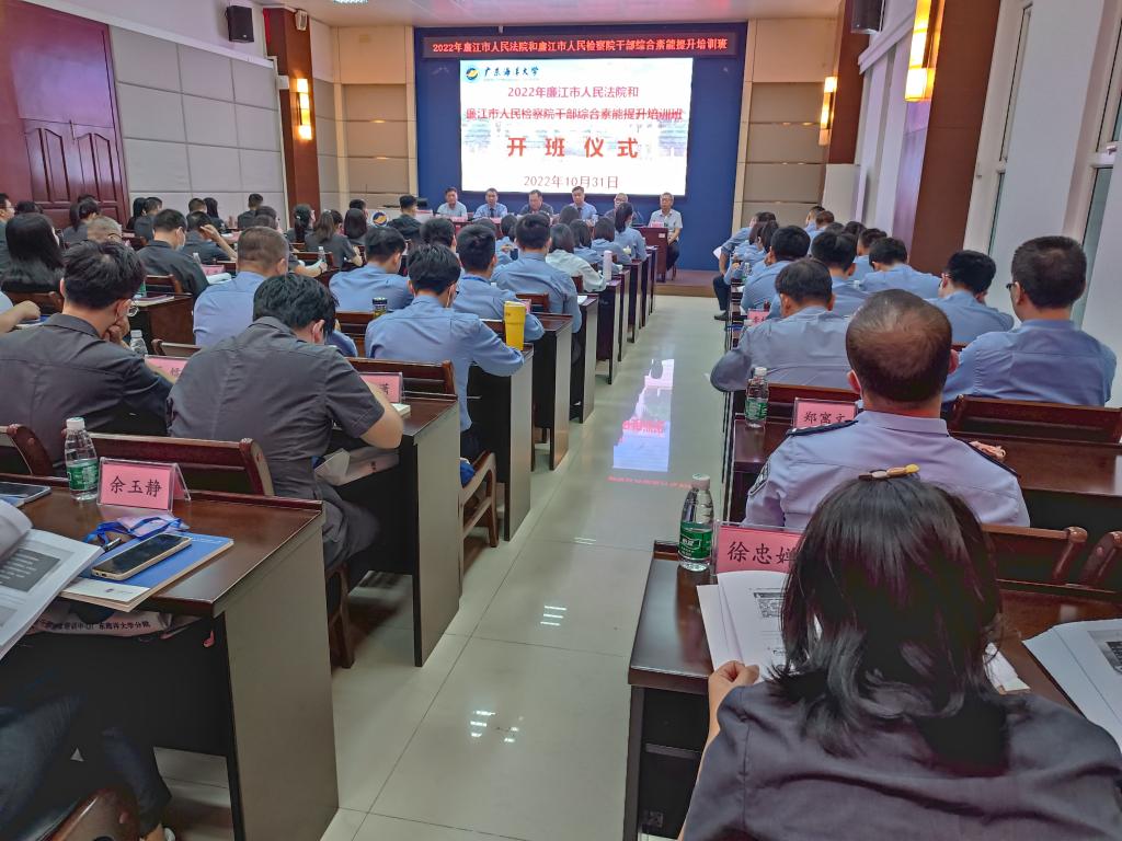 10月31日下午,2022年廉江市人民法院和廉江市人民检察院干部综合素能提升培训班在英国上市公司365湖光校区博物馆会议室顺利开班。廉江市人民法院党组书记、院长陈梦敦,廉江市人民检察院党组成员、副检察长叶军,廉江市人民检察院党组成员、副检察长江丽兵,廉江市人民检察院党组成员、执行局局长李锦海,英国上市公司365英国上市公司365院长安立龙和培训班83名学员及相关工作人员参加开班仪式。开班仪式由英国上市公司365副院长潘康培主持。