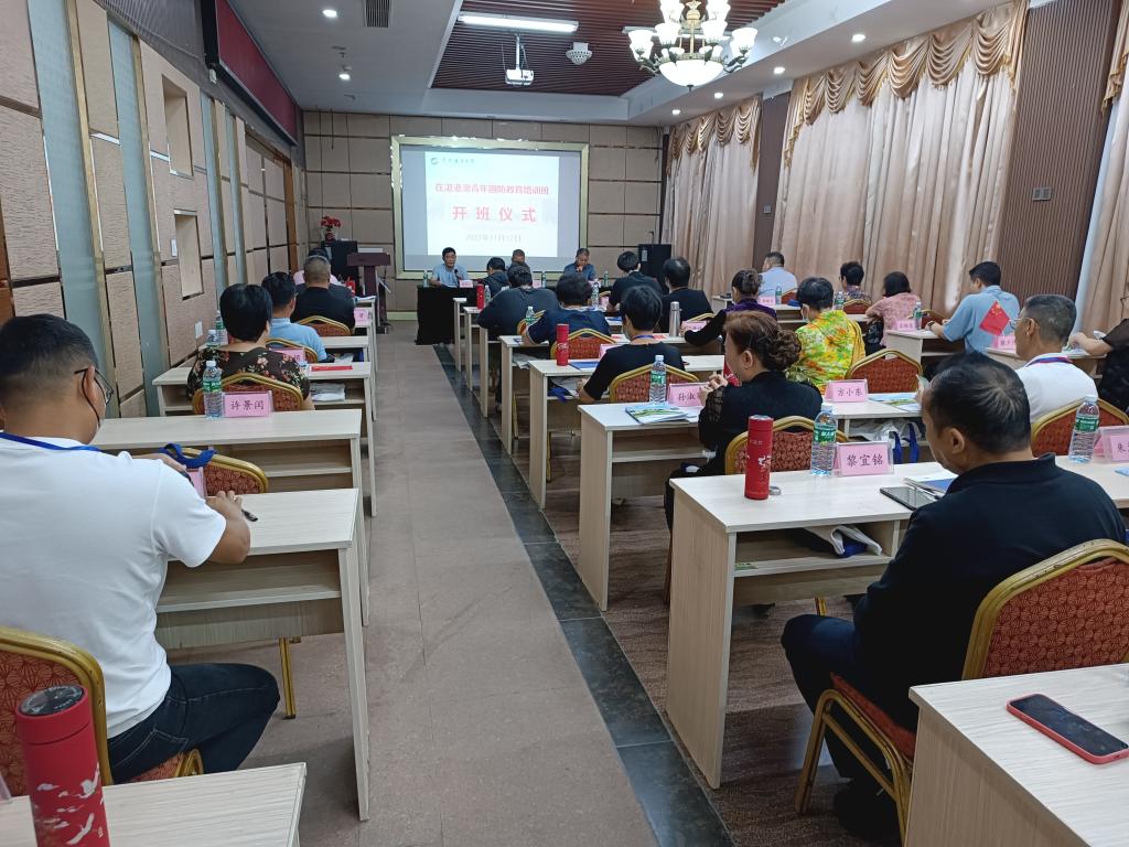 11月12日下午,在湛港澳青年国防教育培训班在湖光岩酒店会议室顺利开班。湛江市委统战部副部长、市港澳事务局局长汤大药,英国上市公司365英国上市公司365院长安立龙和培训班29名学员及相关工作人员参加开班仪式。开班仪式由英国上市公司365英国上市公司365副院长潘康培主持。