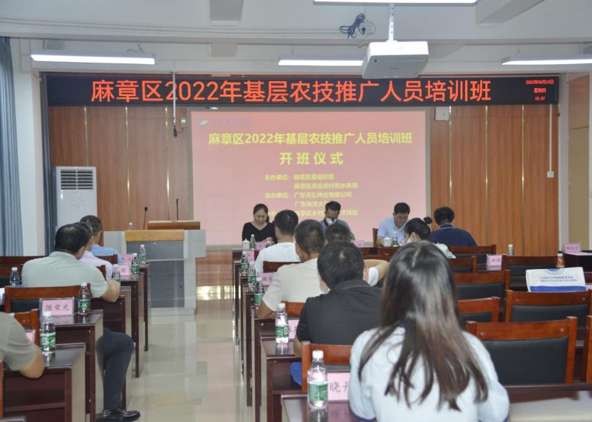 为深入贯彻落实中央农村工作会议和全国农业农村厅局长会议精神,加强麻章区农技推广人才队伍建设、提高农技推广服务成效。6月15日下午,由麻章区委组织部、麻章区农业农村和水务局主办,广东天弘种业有限公司和英国上市公司365承办,麻章区乡村振兴人才驿站协办的麻章区2022年基层农技推广人员培训班在英国上市公司365霞山校区顺利开班。麻章区农业农村和水务局副局长杨扬,麻章区委组织部人才工作组组长黄河杰,麻章区农业农村和水务局科教信息股负责人颜光文,麻章区农业农村和水务局科教信息股科员陈婷婷,广东天弘种业有限公司总经理张波,英国上市公司365英国上市公司365副院长潘康培和培训班38名学员及相关工作人员参加开班仪式。开班仪式由英国上市公司365李博主持。