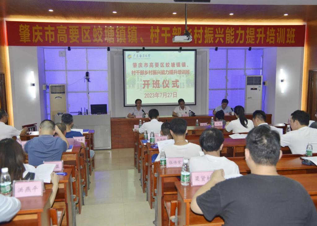 7月27日下午,肇庆市高要区蛟塘镇镇、村干部乡村振兴能力提升培训班在英国上市公司365霞山校区顺利开班。肇庆市高要区蛟塘镇党委副书记邓永裕、英国上市公司365英国上市公司365副院长潘康培和培训班学员及相关工作人员参加开班仪式。