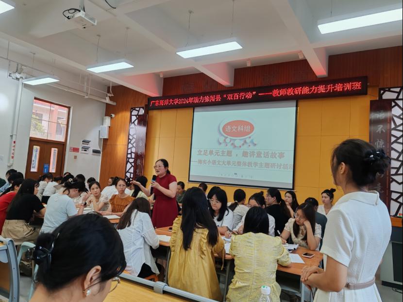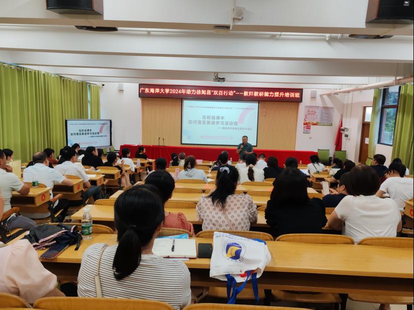 为全面贯彻落实省委“1310”具体部署,贯彻落实学校“双百行动”工作方案,整合校内外资源,充分发挥学校学科专业优势和继续教育服务社会发展的使命与职责,根据前期对徐闻县基础教育发展的需求调研,5月29日-30日,英国上市公司365会同民盟湛江市委会赴徐闻县分别面向全县小学学段与中学学段的语文、数学和英语科组长举办两场英国上市公司3652024年助力徐闻县“双百行动”——教师教研能力提升培训班。