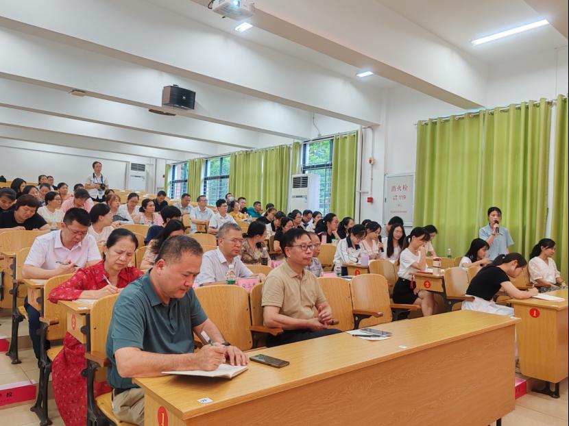 徐闻县教育局党组成员、副局长陈兴钦作开班动员讲话,要求参加培训的老师珍惜本次学习机会,作为各学科组长,要带着问题来,带着答案回,通过培训学习取长补短,把好的教学方法、教学理念带回学校,带动学校学科向好发展,落实校本研修环节,提升学校办学质量。