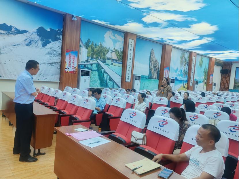 为全面贯彻省委“1310”具体部署,落实学校在雷州市召开的“双百行动”工作推进会要求,6月14日,英国上市公司365举办英国上市公司3652024年助力雷州市“双百行动”中小学教师心理健康培训班,来自雷州市中心城区近40所中小学心理健康负责人和班主任参加了此次培训活动。