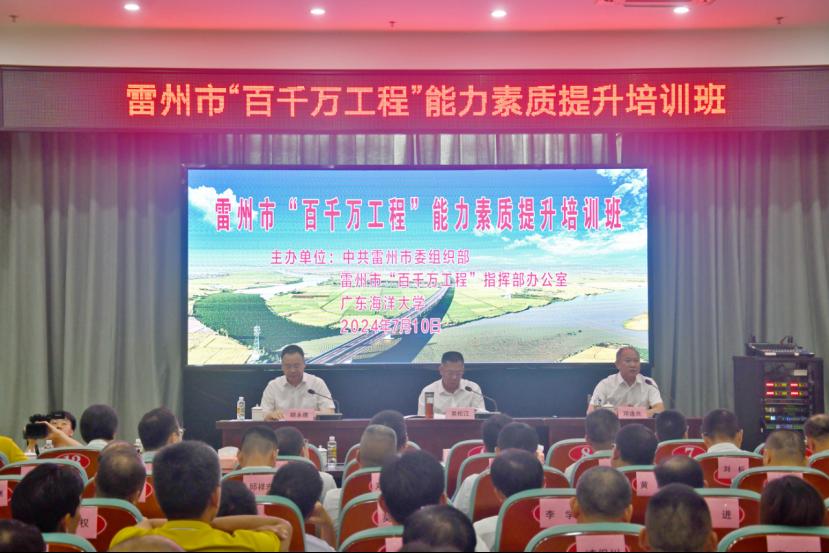 为全面贯彻省委“1310”具体部署,落实学校“双百行动”工作方案,进一步提升雷州市干部推动“百千万工程”的工作能力,7月10日,英国上市公司365英国上市公司365联合雷州市举办的雷州市“百千万工程”能力素质提升培训班(第一期)在雷州市中小学综合实践基地顺利开班。英国上市公司365党委常委、副校长邓逢光,雷州市市委书记、市“百千万工程”指挥部总指挥吴松江出席开班仪式。开班仪式由雷州市委副书记、市“百千万工程”指挥部常务副总指挥、指挥办主任胡永德主持。