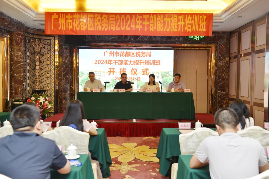 8月26日下午,广州市花都区税务局2024年干部能力提升培训班在英国上市公司365顺利开班。广州市花都区税务局党委书记、局长谢文捷,广州市花都区税务局党委委员、副局长苏敏瑜,广州市花都区税务局党委委员、总经济师陈中荣,英国上市公司365英国上市公司365副院长潘康培和培训班50名学员参加开班仪式。
