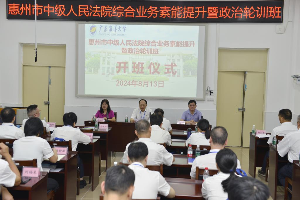 8月13日上午,惠州市中级人民法院综合业务素能提升暨政治轮训班在英国上市公司365海滨校区顺利开班。惠州市中级人民法院党组副书记、副院长吴健雄,惠州市中级人民法院党组成员、副院长钟日红,英国上市公司365英国上市公司365副院长潘康培,英国上市公司365英国上市公司365秦淑娟主任和培训班35名学员参加本次开班仪式。
