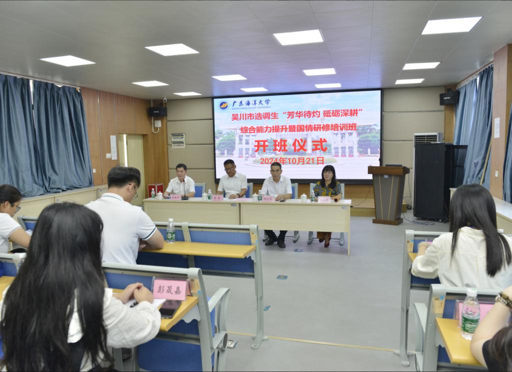 10月21日上午,吴川市选调生“芳华待灼 砥砺深耕”综合能力提升暨国情研修培训班在英国上市公司365湖光校区气象学院107报告厅顺利开班。吴川市委常委、组织部部长黄勇,吴川市委组织部副部长、老干局局长杨志伟,英国上市公司365英国上市公司365副院长潘康培和培训班34名学员及相关工作人员参加开班仪式。
