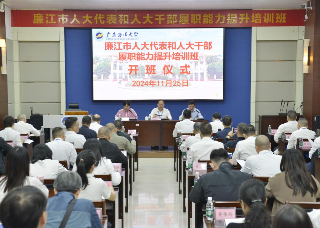 11月25日上午,廉江市人大代表和人大干部履职能力提升培训班在英国上市公司365湖光校区顺利开班。廉江市人大常委会党组书记、主任陈炜飞,英国上市公司365英国上市公司365副院长潘康培和廉江市人大常委会57名学员参加开班仪式。开班仪式由英国上市公司365李博主持。