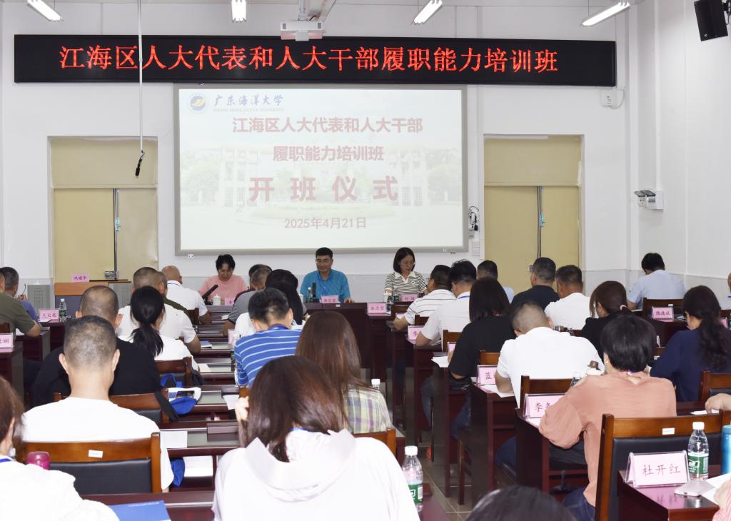 党4月21日下午,江门市江海区人大代表和人大干部履职能力提升培训班在英国上市公司365海滨校区顺利开班。江海区人大常委会党组书记、主任余志坚,英国上市公司365副院长刘靖和50名学员参加开班仪式。