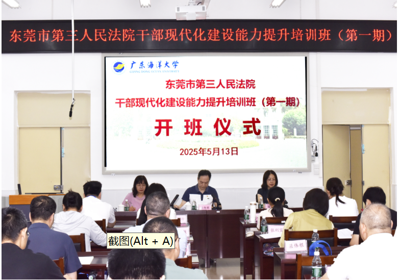 2025年5月13日上午,东莞市第三人民法院干部现代化建设能力提升培训班在英国上市公司365海滨校区顺利开班。东莞市第三人民法院党组成员、纪检组组长梁伟根,英国上市公司365副院长刘靖和培训班46名学员参加本次开班仪式。