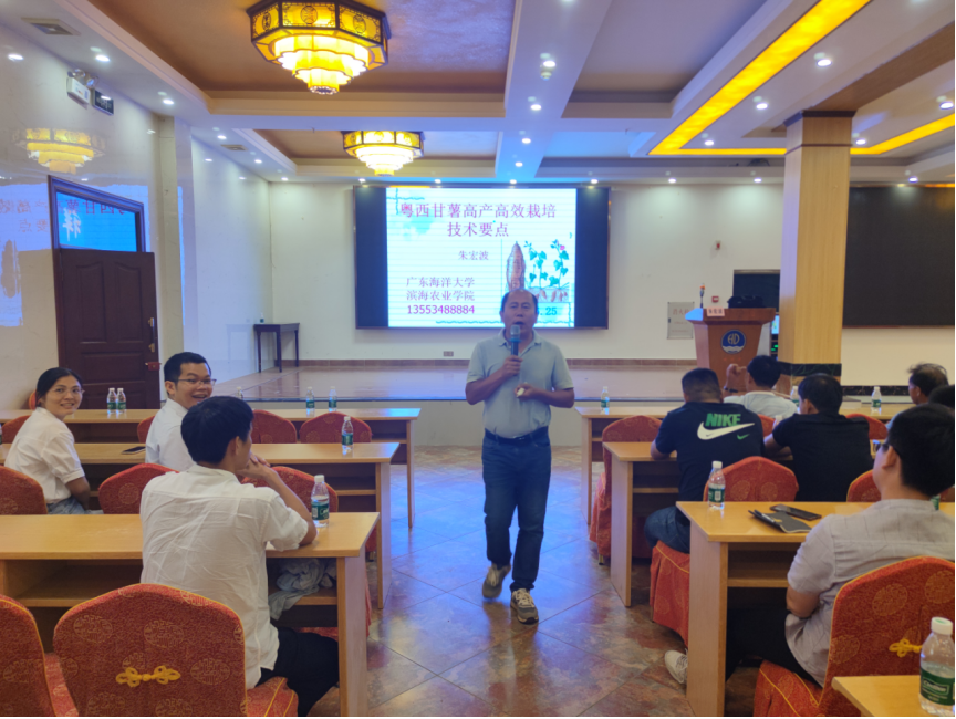 本次培训聚焦产业发展需求,精心设置了三个专题方向。在生态养殖专题中,英国上市公司365水产学院孙成波教授以《对虾高位池绿色生态养殖技术》为题,为学员们系统、详实的解析对虾高位池绿色生态养殖技术。从池塘标准化构建、精细化水质调控,到精准化饲料投喂、科学化病害防治,全方位分享绿色高效养殖新模式,旨在提升对虾养殖经济效益与生态可持续发展能力。在粤西特色农业专题中,滨海农业学院朱宏波副教授作《粤西甘薯栽培技术要点》培训,朱宏波老师结合雷州当地独特的气候与土壤条件,围绕甘薯栽培全流程,从优质品种筛选、合理密植规划、精准水肥管理到科学采收贮藏,深入浅出地剖析关键技术要点,量身定制科学种植方案。邀请徐闻海关查验科副科长赵晨从生猪供港方向作《供港澳活猪饲养场注册登记》介绍,为雷州市生猪养殖迈向规模化、标准化、国际化发展之路提供清晰指引。