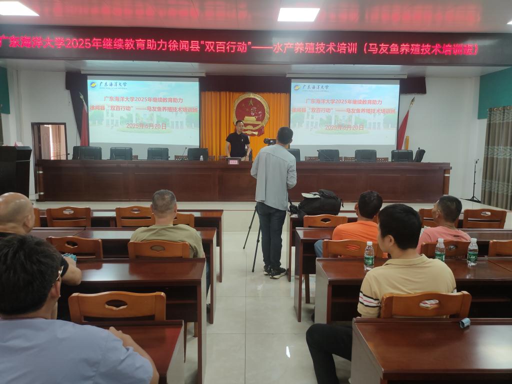 20日上午,在前山镇人民政府举办东风螺养殖技术培训班,水产学院吕文刚副教授现场讲解东风螺养殖技巧,细致剖析螺类生长习性。下午在海安镇人民政府举办的马友鱼养殖技术培训班邀请水产学院王忠良教授授课,通过分析市场需求并分享生态养殖经验,确保养殖户掌握高效养殖策略,提升产品竞争力,推动徐闻水产养殖业可持续发展。