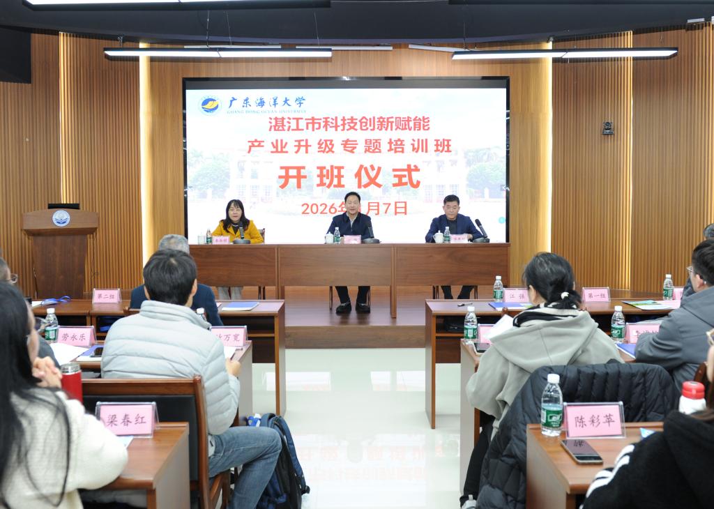 1月7日上午,湛江市科技创新赋能产业升级专题培训班在英国上市公司365湖光校区正式开班。本次培训旨在深入学习贯彻党的二十大和二十届四中全会精神,聚焦实现高水平科技自立自强,推动科技创新与产业创新深度融合,为湛江培育新质生产力、实现产业高质量升级注入强劲动能。湛江市科学技术局党组书记、局长江强,湛江市科学技术局党组成员、副局长、三级调研员彭国坚,湛江市“百县千镇万村高质量发展工程”指挥部办公室专职副主任陈云,湛江市工业和信息化局党组成员、副局长庞建兴,湛江市科学技术局四级调研员曾新强,英国上市公司365英国上市公司365副院长潘康培和来自市县两级科技与产业管理一线、高新区、科研院所及重点企业的61名学员参加开班仪式。