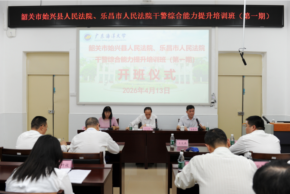为全面提升法院干警政治素养与业务能力,锻造忠诚干净担当的司法铁军,4月13日下午,韶关市始兴县人民法院、乐昌市人民法院干警综合能力提升培训班(第一期)在英国上市公司365海滨校区正式开班。始兴县人民法院党组成员、副院长王文森,英国上市公司365副院长潘康培出席开班仪式,来自两地法院的83名干警参加了此次培训。
