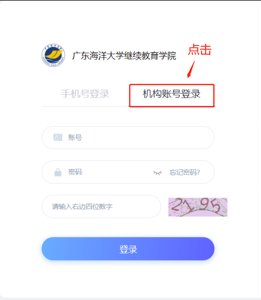 4.新生必须在班主任或教务员的指导下,登录综合教务管理系统(http://gdhydx.jxjy.chaoxing.com/login),首次登录需选择机构账号登录页面进行登录,账号为学号,密码为身份证号后六位,学号由学校继续教育综合教务管理系统(统一)生成,由班主任或教务员下发。学生首次登录综合教务管理系统,需完善并核对个人信息,如有错误,应立即报给班主任或教务员上报学院进行修改。新生可使用综合教务管理系统查看个人学籍资料、课程安排、提交各类申请以及查阅学校、学院通知公告等。