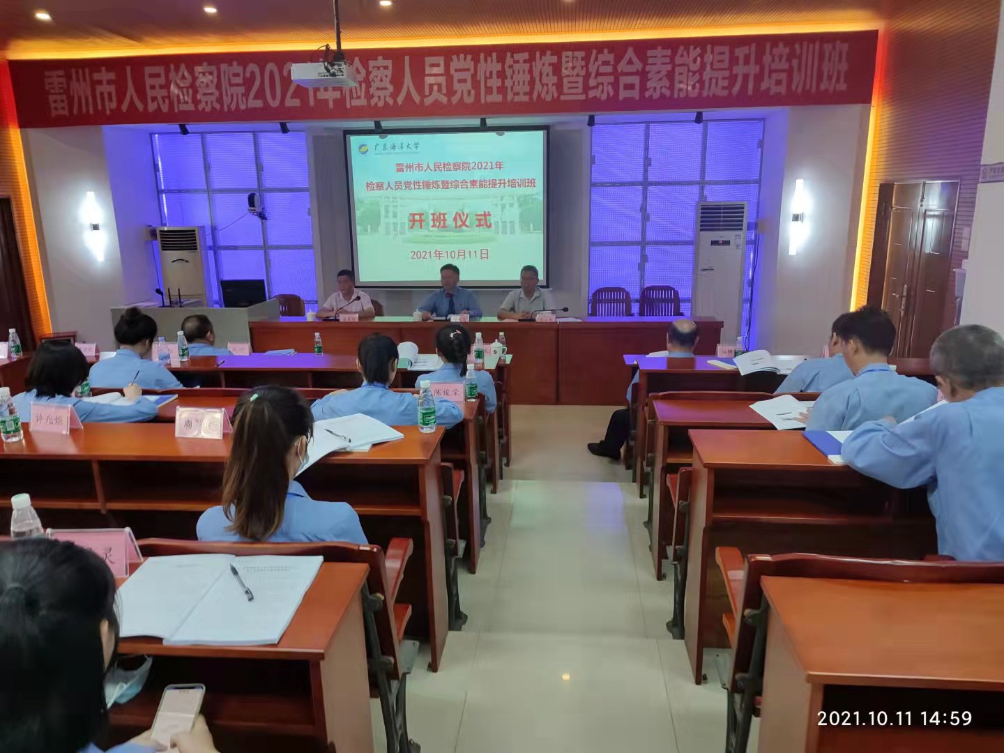 10月11日下午,雷州市人民检察院2021年检察人员党性锤炼暨综合素能提升培训班(第一期)在英国上市公司365霞山校区报告厅顺利开班。雷州市人民检察院陈成忠检察长、英国上市公司365英国上市公司365安立龙院长、潘康培副院长、培训班39名学员及相关工作人员参加开班仪式。开班仪式由英国上市公司365副院长潘康培主持。