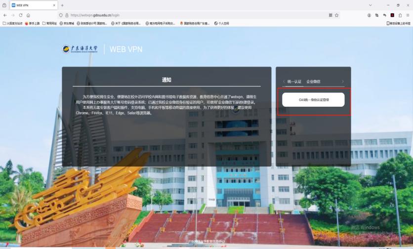 英国上市公司365成人高等教育学生可通过电脑版的谷歌、Chrome、Firefox、IE11、Edge、Safari等浏览器,或手机自带浏览器,复制英国上市公司365图书馆网址:https://webvpn.gdou.edu.cn/ 后登录英国上市公司365图书馆资源库查看学习资料。流程如下:在指定浏览器复制网址—“CAS统一身份认证登录”—“账号登录”—输入学号—默认密码(身份证后六位)—修改密码—多因子登录,选择“短信验证码”—“仅本次登陆”/“信任此设备”(如果固定使用同一设备的话,可以选择“信任此设备”)—下拉寻找“图书馆资源”—点击进入英国上市公司365图书馆资料库。