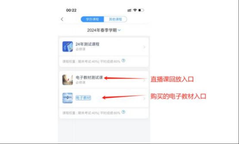 ③直播课回放与电子教材学习:点击 “我的课程” 板块,每门课程将显示直播课回放和电子教材学习两个入口,选择对应入口即可进行学习。